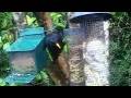 clip of the sight and sounds of a male Blackbird spotted eating on morning