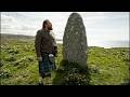 a kilt and sporran and walking by the Neolithic Standing Stone of Brevig on